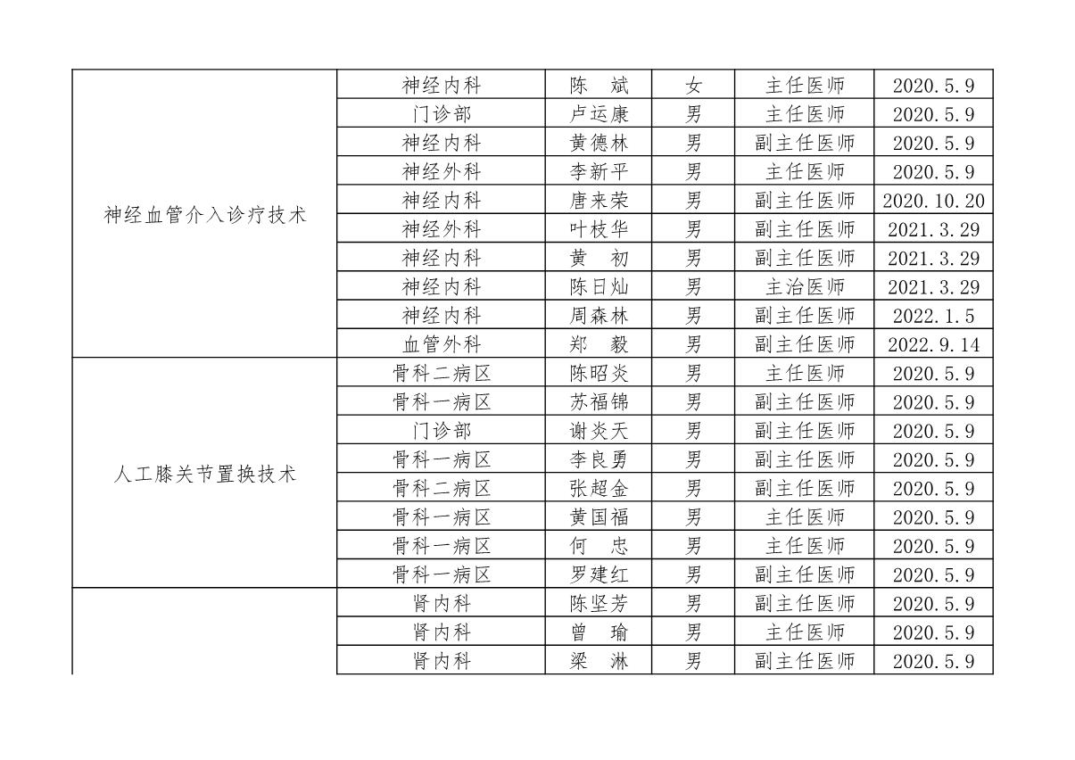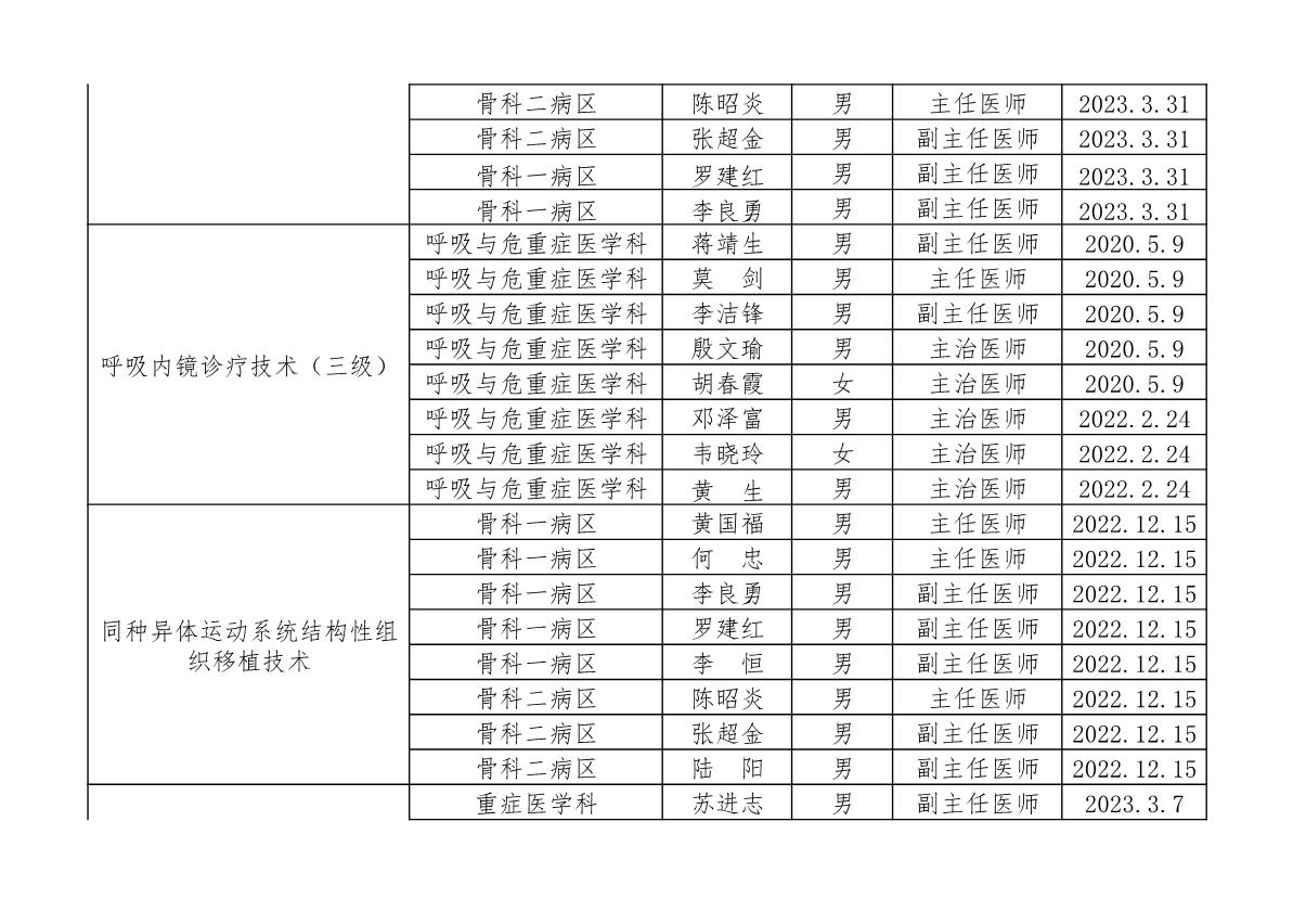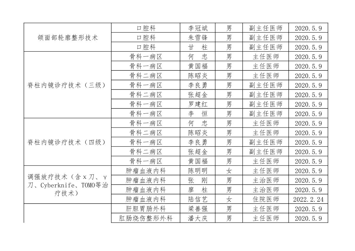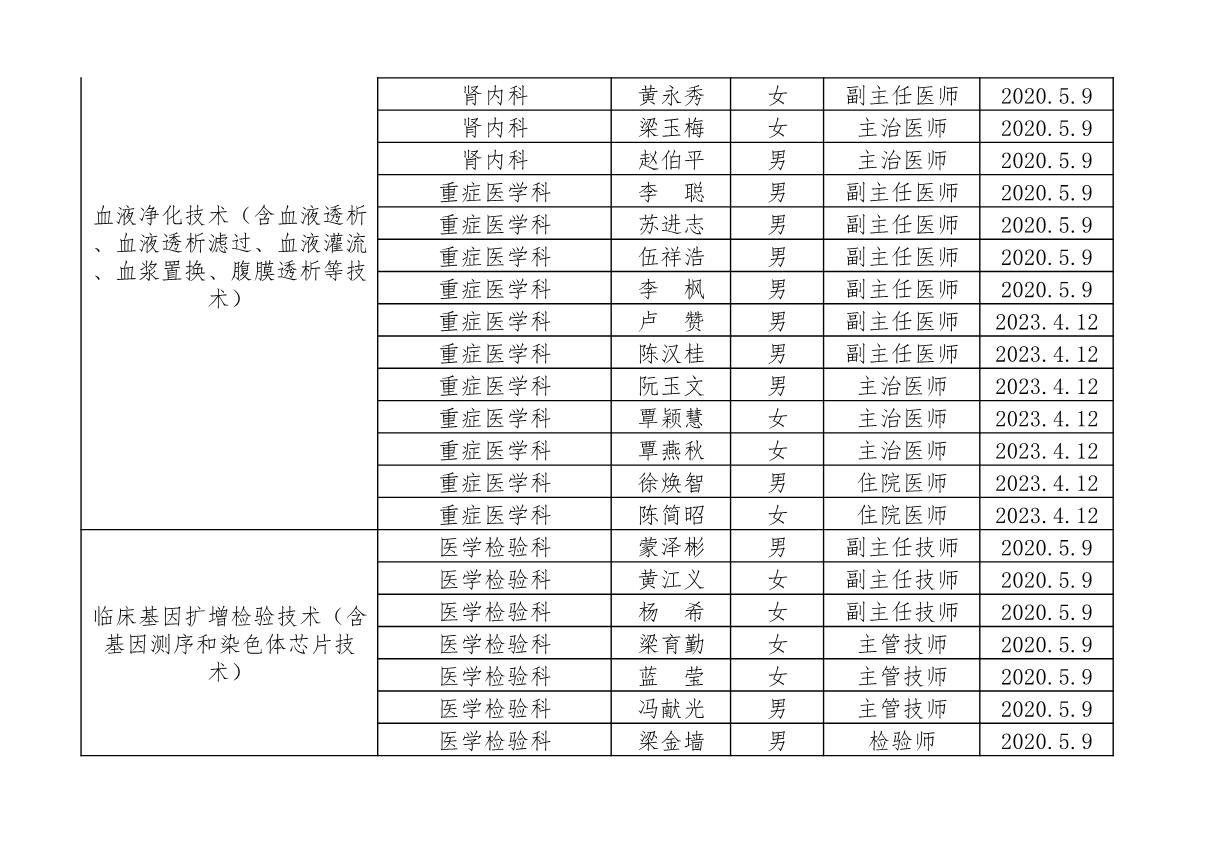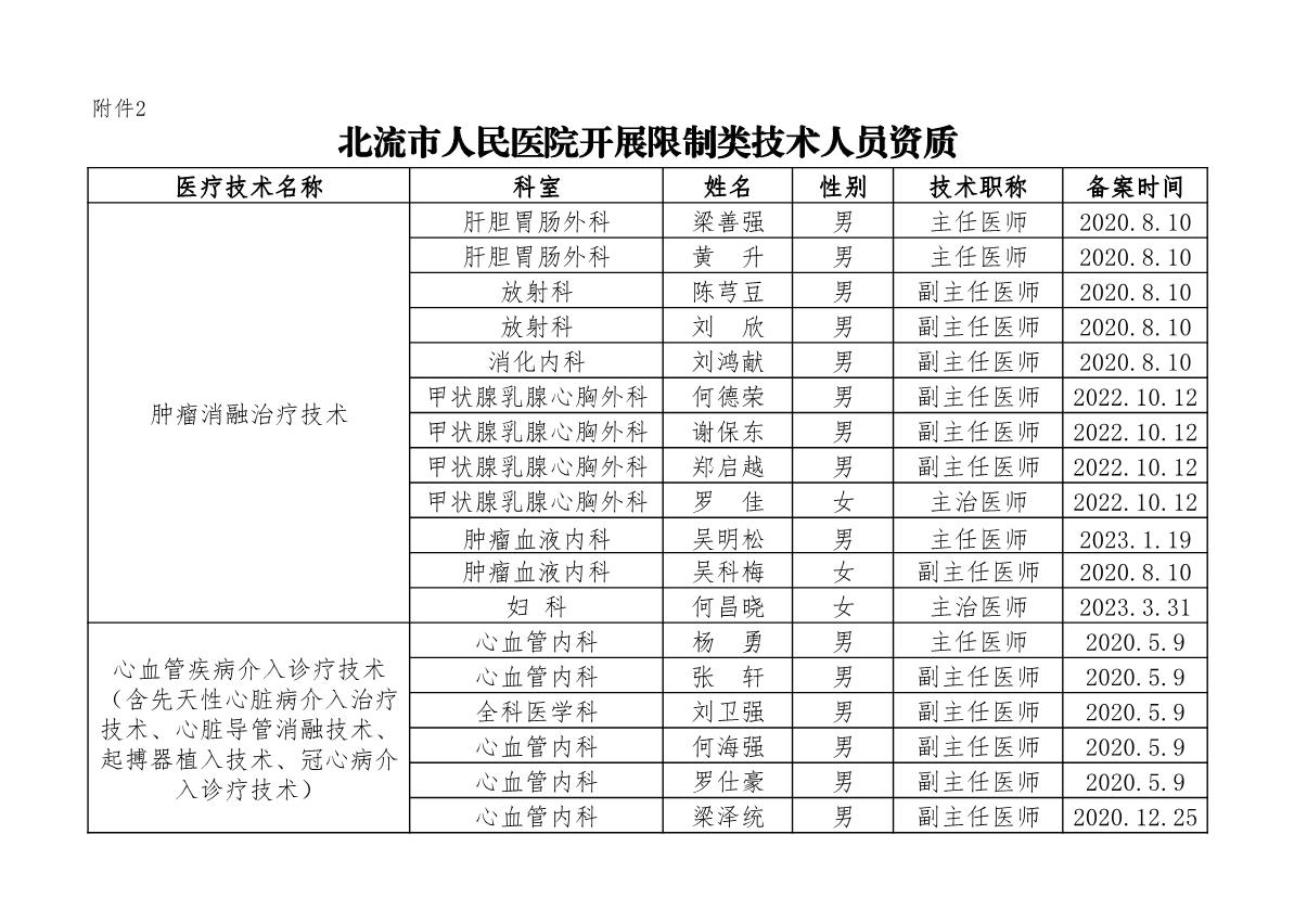 北流市人民医院开展限制类技术人员资质