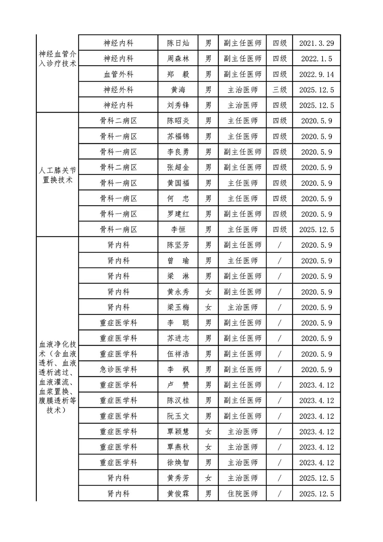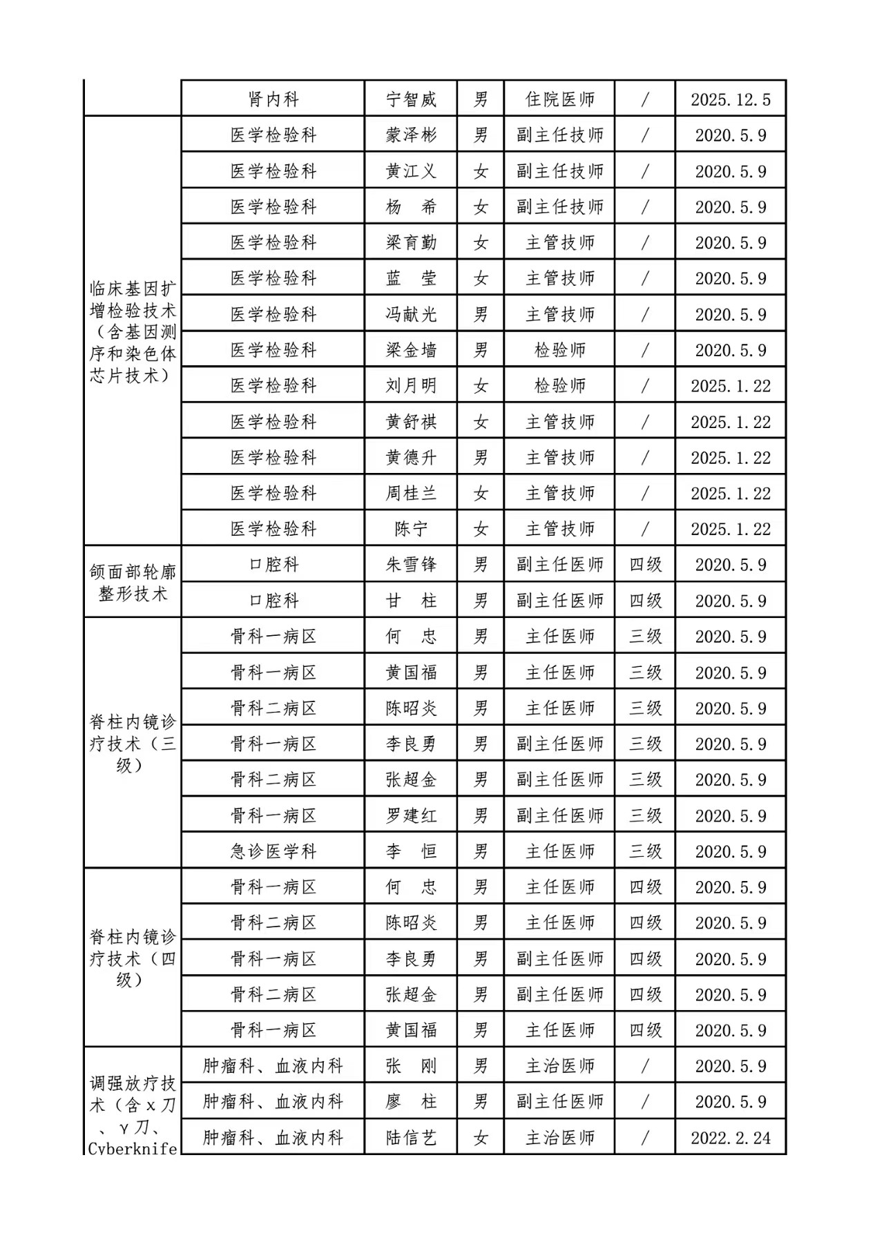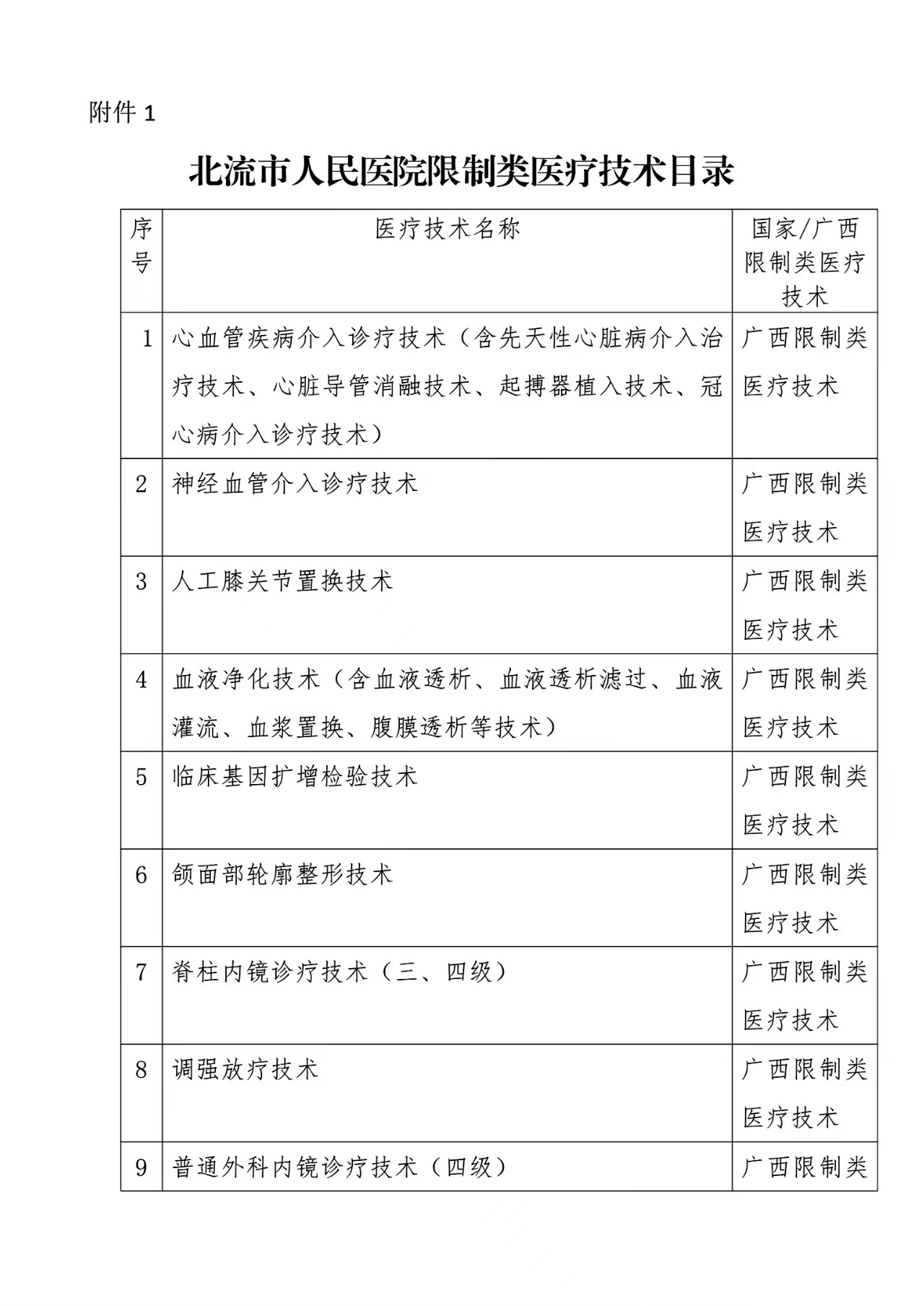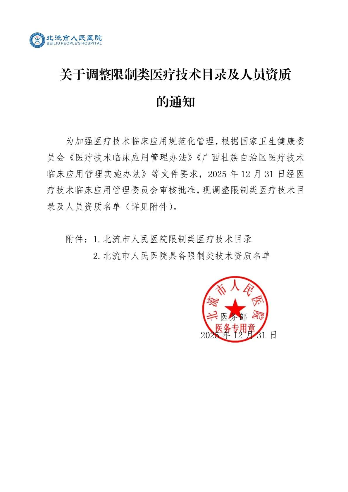 关于调整限制类医疗技术目录及人员资质的通知