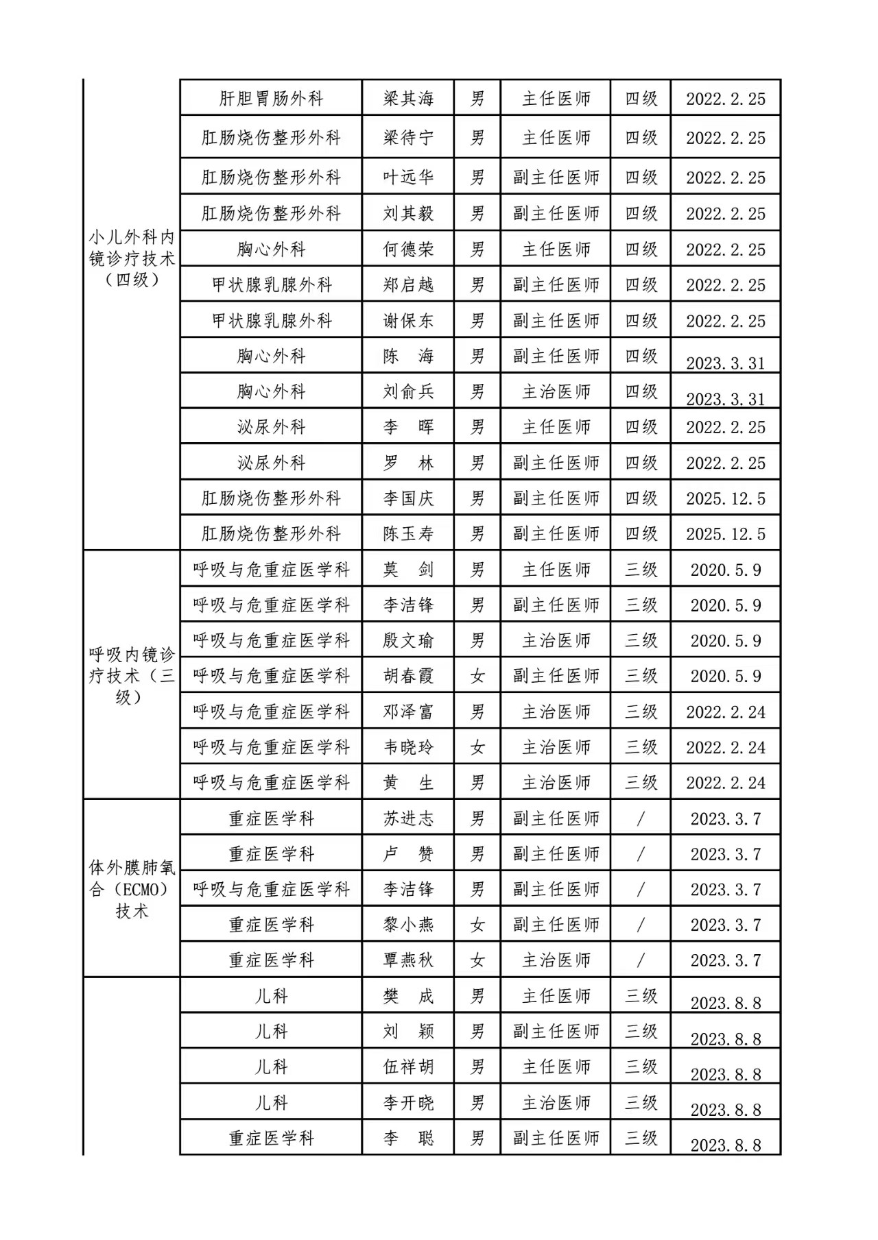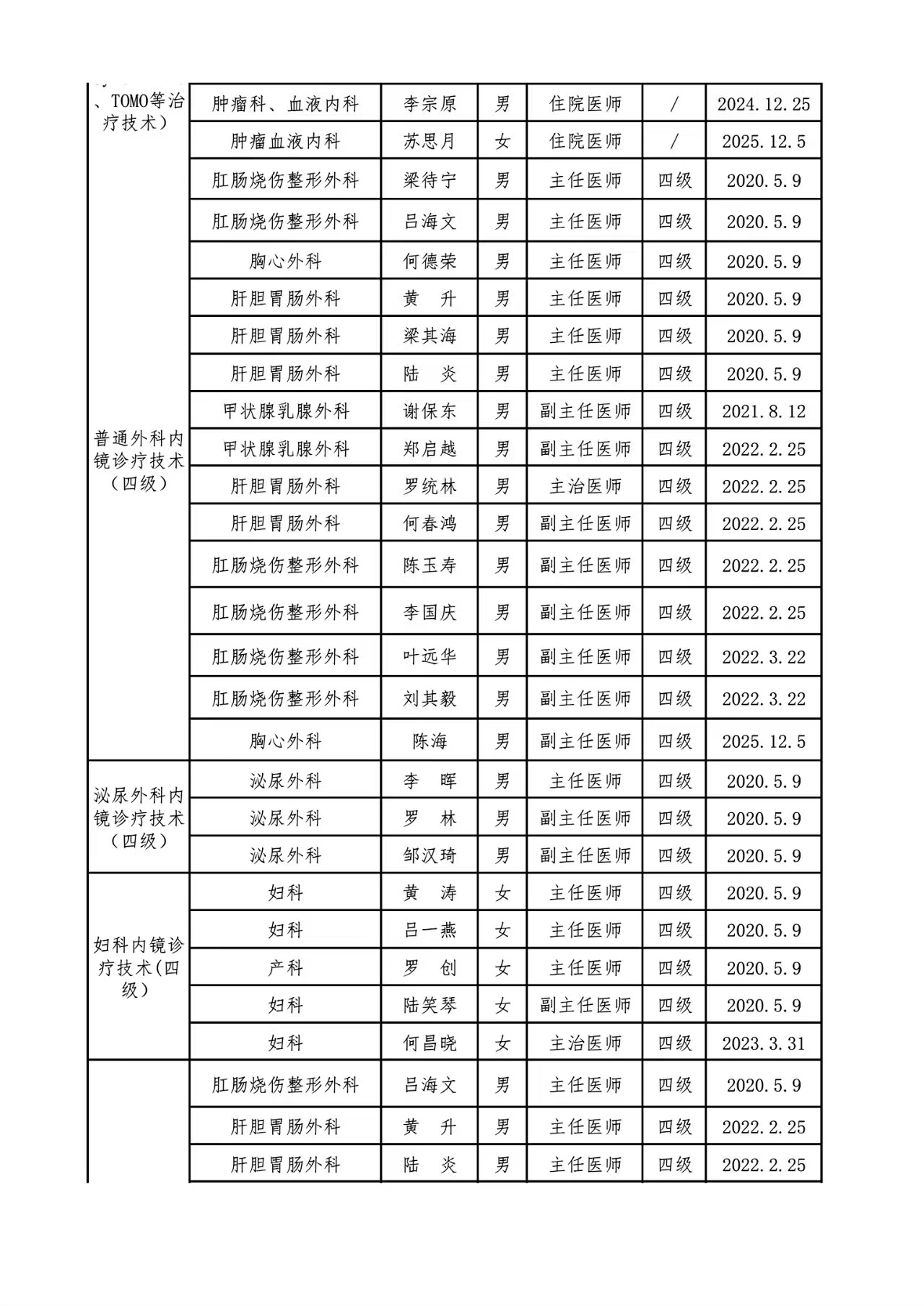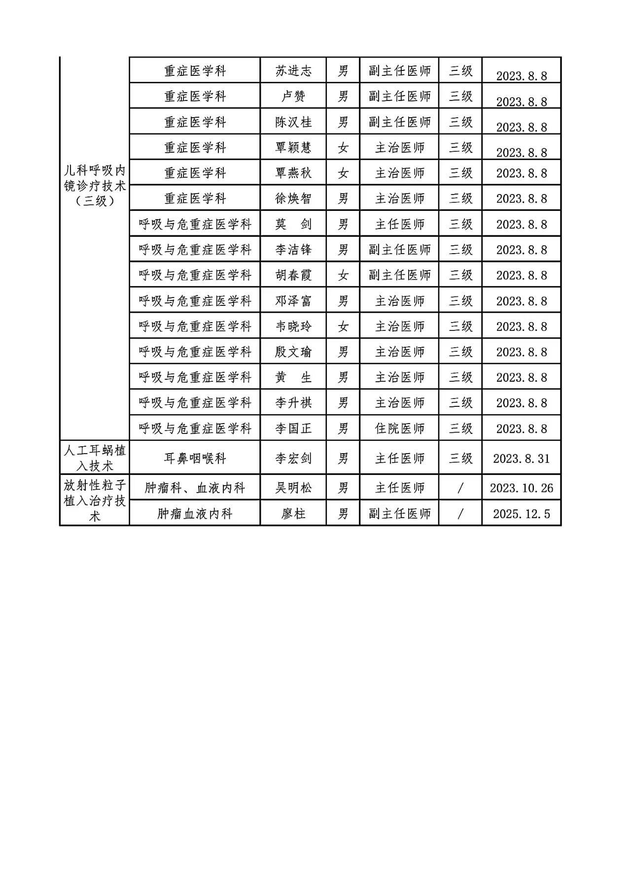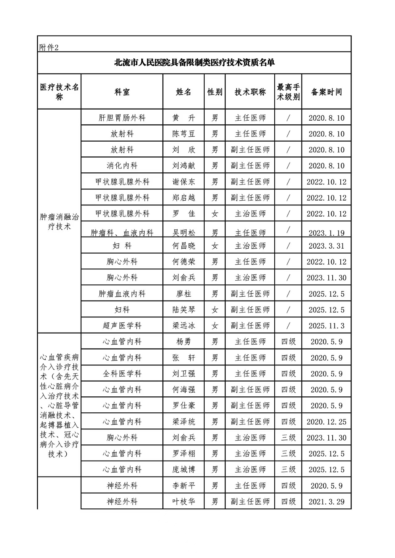 关于调整限制类医疗技术目录及人员资质的通知