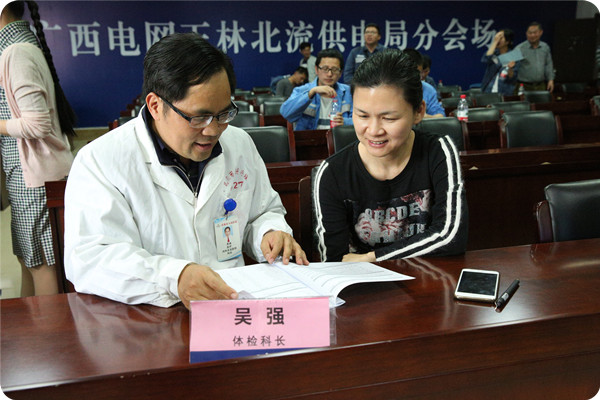 活动由体检科吴强科长主持,专家们在现场与供电局干部职工面对面、一对一地对体检报告做了疑问答复和保健指导,并着重介绍了脂肪肝、高血压、糖尿病、高脂血症的定义、病因、如何防治及控制目标等保健知识和常识。