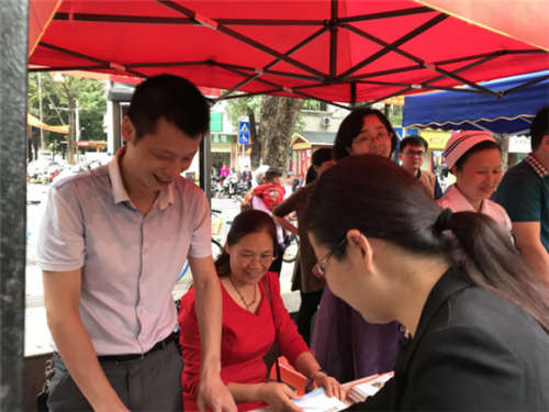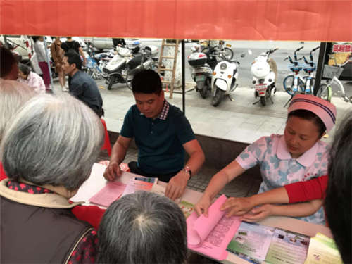 上图为苏福锦副院长、陈广兰护士长为市民发放健康宣传资料