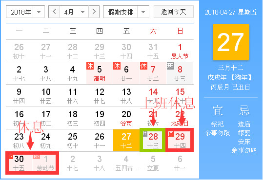 二、4月28日(星期六)上班。