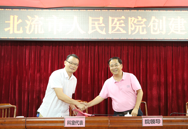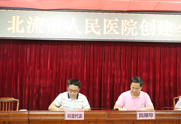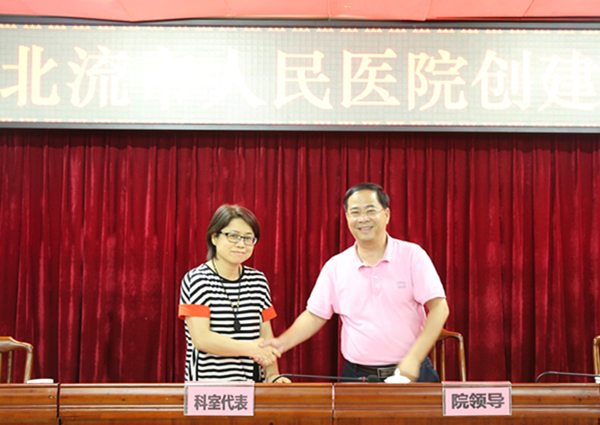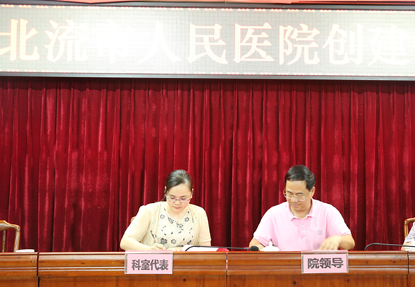 大会上,凌政院长分别与各科室代表签订创建全国文明城市责任书,强化落实各科室职责,加快推进创建全国文明城市工作。