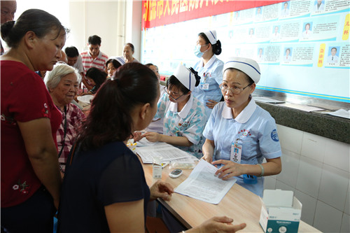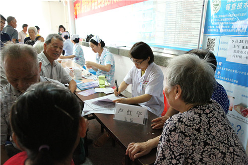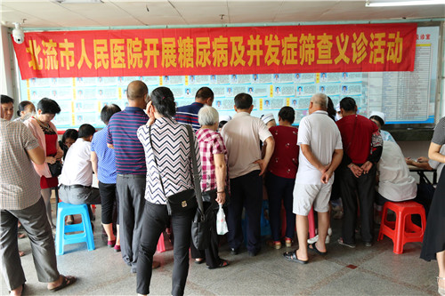 随着我国糖尿病患病率逐年快速上升,糖尿病并发症影响多个系统或脏器,严重影响患者的生活质量和预期寿命。糖尿病的防治和对糖尿病并发症的早期筛查已经成为亟待解决的重大公共卫生问题。我院内分泌风湿科科主任卢红平副主任医师、护长覃焕玲副主任护师积极响应国家在防控糖尿病领域的号召于2018年5月25日组织内分泌风湿科医护人员、糖尿病教育小组在我院内科楼大厅开展糖尿病及并发症免费筛查、义诊活动。