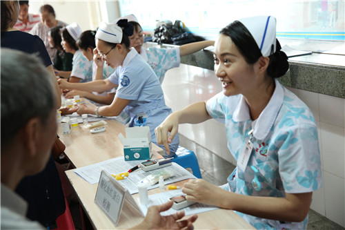 本次活动中,现场工作人员为参与活动的市民提供了包括免费专家咨询,免费糖尿病风险评估、空腹血糖测试、餐后2小时血糖测试,免费糖化血红蛋白检测,并开展糖尿病足神经病变等并发症筛查一系列项目。当天现场工作人民热心、细心、耐心及高度工作热情获得到场参加活动的人民群众高度好评。