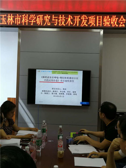 当天,玉林市科学技术局组织有关专家对北流市人民医院承担的科研课题“降钙素原在哮喘-慢阻肺重叠综合征中的应用价值”(合同编号:玉市科计20161601)进行评审验收。 由玉林市科学情报所所长徐荣主任医师任组长,玉林市中医院呼吸内科主任梁月俭主任医师为副组长等5名专家对课题研究进行了验收评审。参加听会的人员有我院蒋靖生副院长、科教科骆书秀科长及课题组成员。专家组听取了项目组汇报,查阅相关资料,经质疑答辩和充分讨论,一致认为该项目提供资料齐全、规范,数据翔实,符合玉林市科技计划项目验收要求, 同意通过验收。