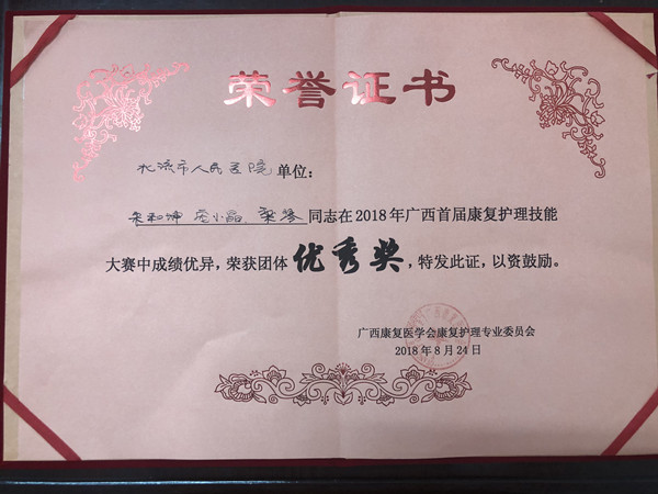 康复医学科是我院近年发展势头最猛的科室之一,是医院的重点建设专科,其门诊量、住院量、业务收入长年位居医院前列,科室以康复疗效显著享誉市内外,亦是全区同级医院中规模最大的康复治疗专科之一,其护理团队荣获佳绩也是该科展示实力的体现。