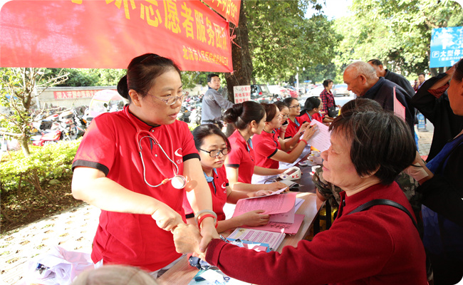 志愿者在为市民做义诊登记
