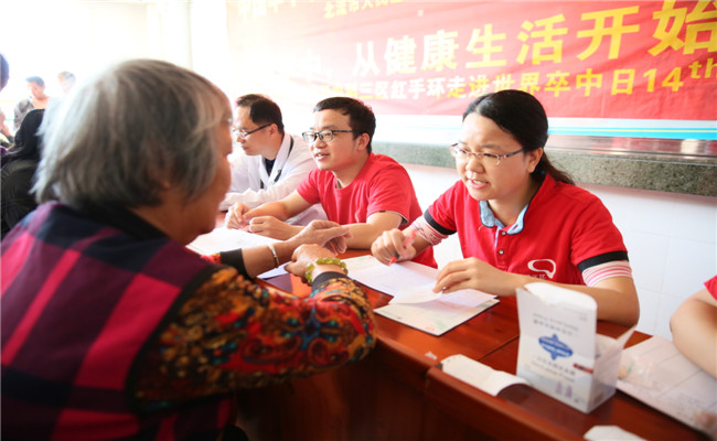 专家们对前来咨询、就诊的患者认真仔细地进行了答疑解惑、康复指导、用药指导,红手环志愿者为患者免费测量血压血糖、免费赠送药品、《脑卒中防治手册》,针对不同患者提出的不同需求,红手环志愿者从专业角度,用通俗易懂的语言、科学正确的方式为他们认真讲解卒中危险因素,卒中二级预防用药、以及卒中后康复等健康科普知识,引导他们如何在日常饮食、生活习惯、适度锻炼及保持良好心理状态方面去预防卒中。让广大群众更正确、直观的了解脑卒中,并意识到脑卒中是可预防控制的疾病,远离卒中,从健康生活开始。此次活动接受健康咨询200人次,发放宣传资料300余份,红手环志愿者受到现场群众点赞。
