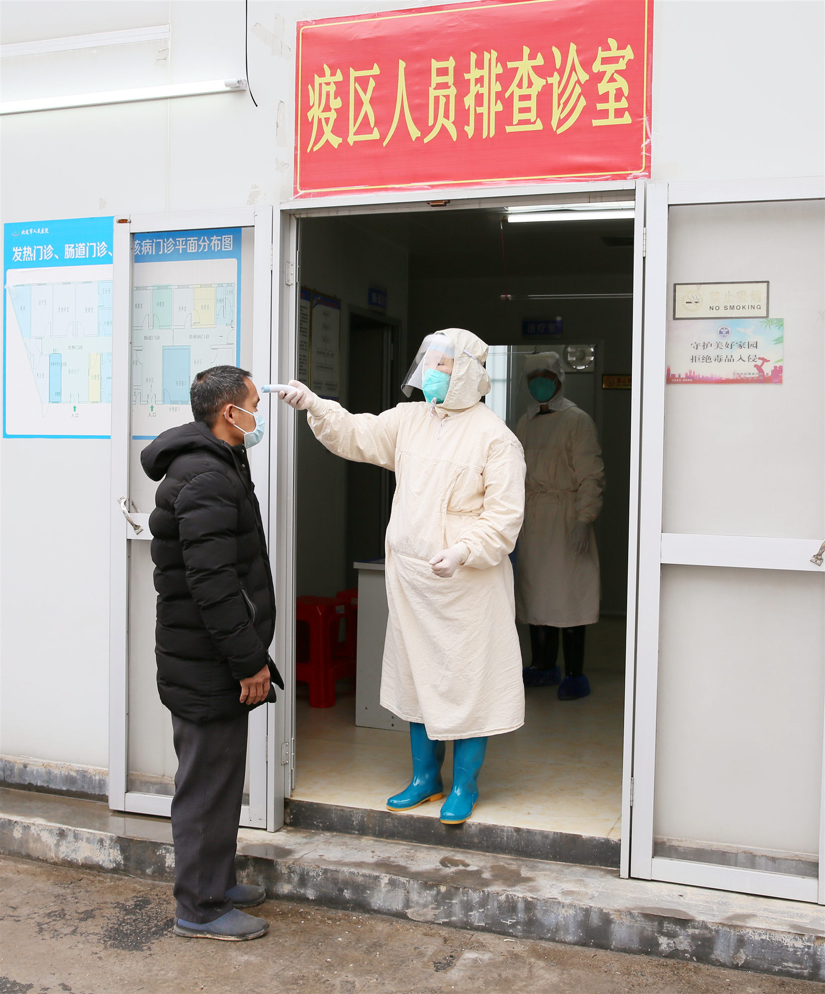 为来自疫区检查患者检测体温