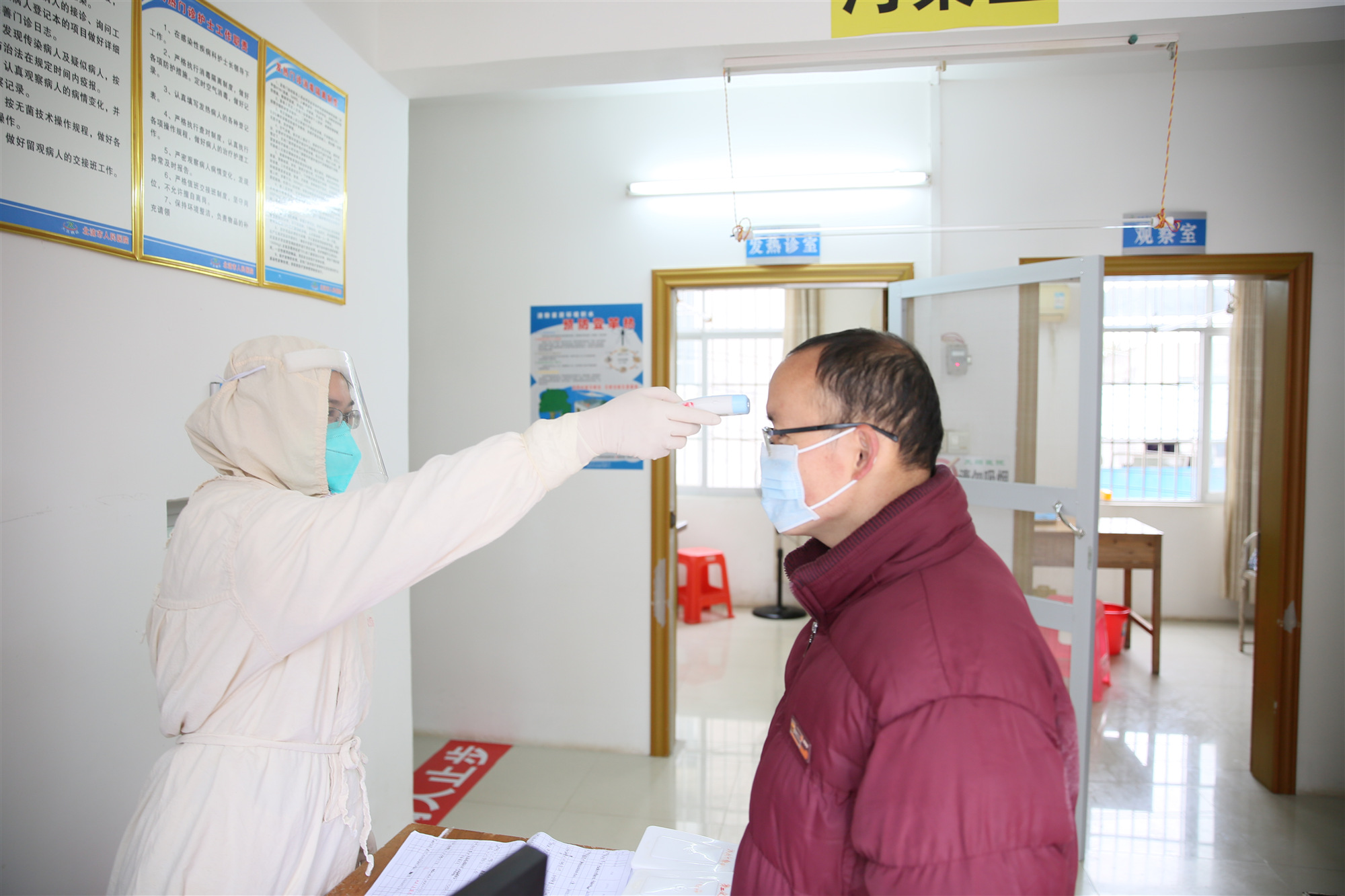 苏福锦副院长介绍说,北流市人民医院在接到预防新型冠状病毒感染肺炎疫情发生的通知后,严格落实责任,加强管理职能,明确分工,落实院、科、组感染防控监测网,对院内的医务人员进行全面摸排,实现分级、分组重点监控,保证医务人员及患者未发生院内交叉感染现象。同时,医院还实行疫检分诊,对来院就诊发热咳嗽患者,进行体温检测和详细登记,询问病史和居住、旅游、工作史,筛查从湖北武汉回来的重点人群。