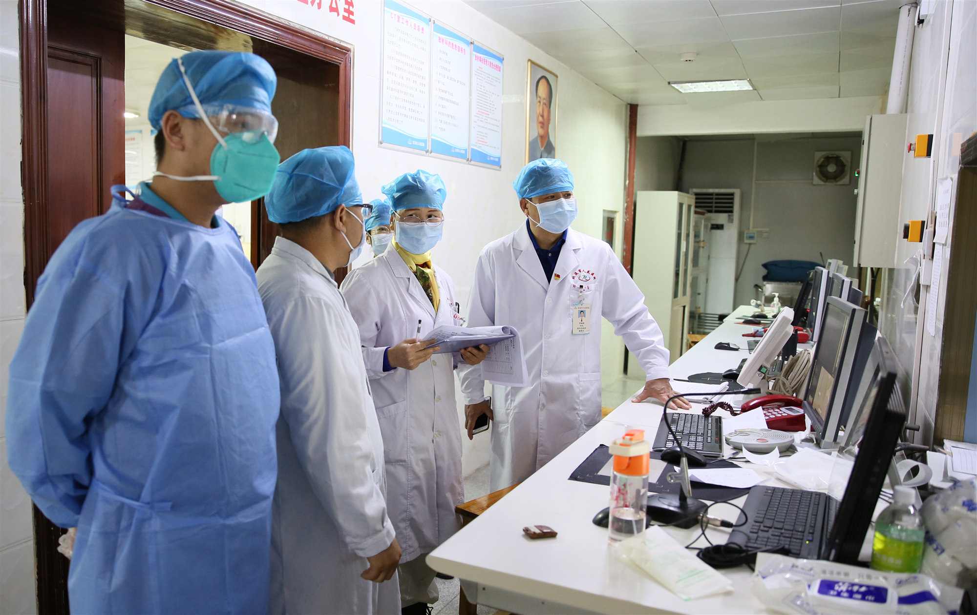 苏福锦副院长(左一)在一线指导感染控制工作