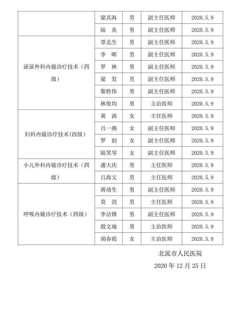 北流市人民医院具备相应限制类医疗技术资质人员名单