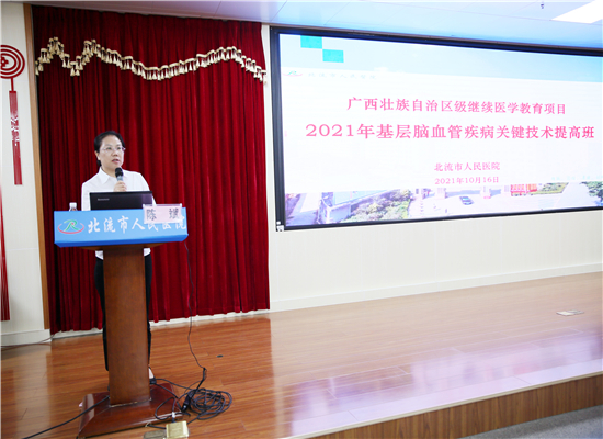 为了全面提升脑血管疾病医疗救治质量,规范神经内科诊疗行为,促进基层医院脑卒中诊治水平,改善医疗服务质量,形成规范的脑卒中治疗模式,以实现降低脑卒中病死率、致残率和疾病负担的目标。10月16日,由北流市人民医院主办的广西壮族自治区级继续医学教育项目——《2021年基层脑血管疾病关键技术提高班》在我院内科楼十三楼顺利举办。