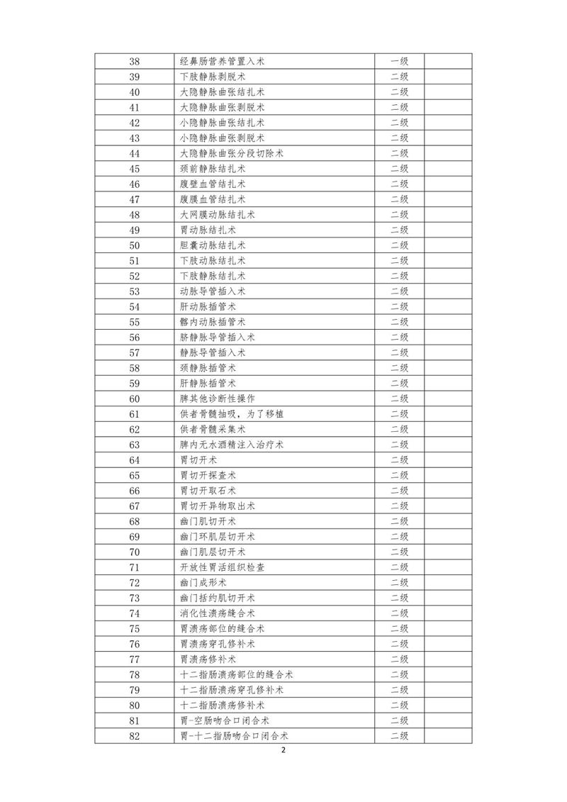 2021年北流市人民医院手术分级目录公示