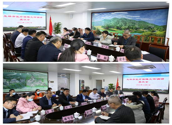 玉林市医疗保障局领导听取汇报后,就目前医院发展和医保管理过程中存在的困难和问题与参会人员进行深入交流和探讨。