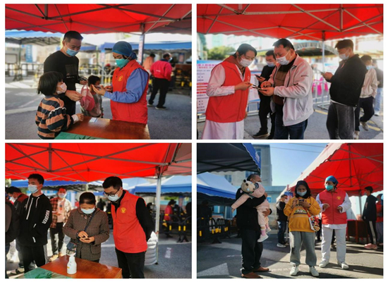,志愿服务部迅速在院内的工作微信群发布招募志愿者公告,党员志愿者们积极响应,投入到志愿服务队伍中来。党员志愿者们在做好个人防护后,积极引导群众有序排队开展核酸检测,向他们推荐支付宝、微信自助服务,在线上挂号、缴费、查看核酸检测报告。